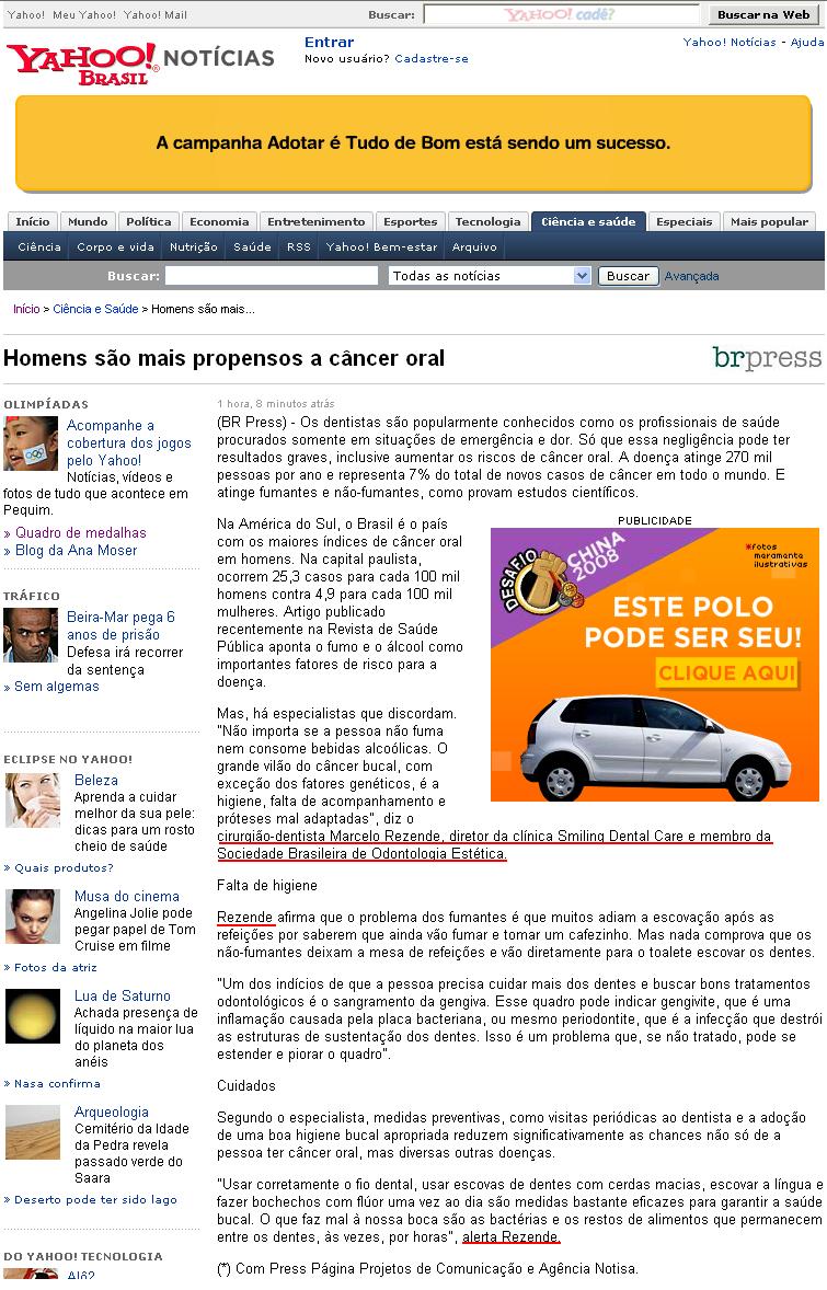 Portal Yahoo - Homens são mais propensos a câncer oral