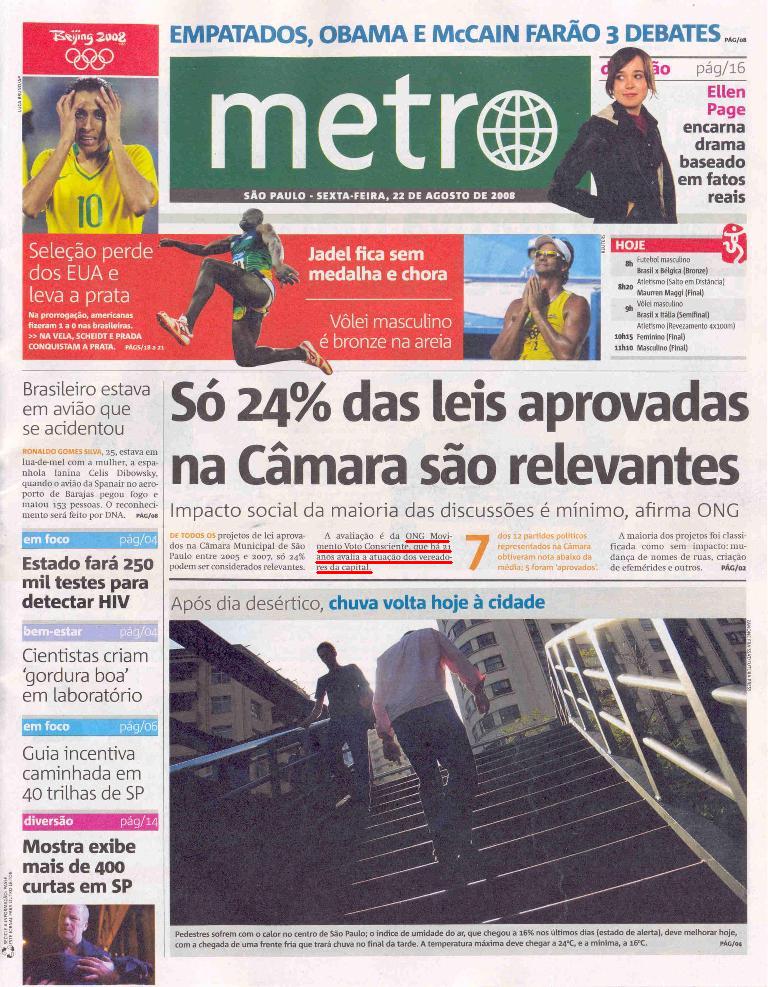 Jornal Metro (22 Ago) - Só 24% das leis aprovadas na Câmara são relevantes