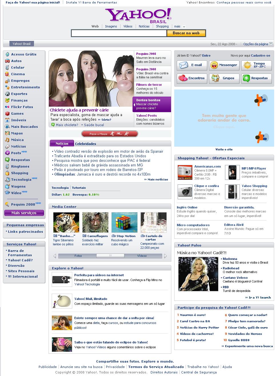 Portal Yahoo (Chamada de capa + matéria) - Chiclete ajuda a prevenir cárie