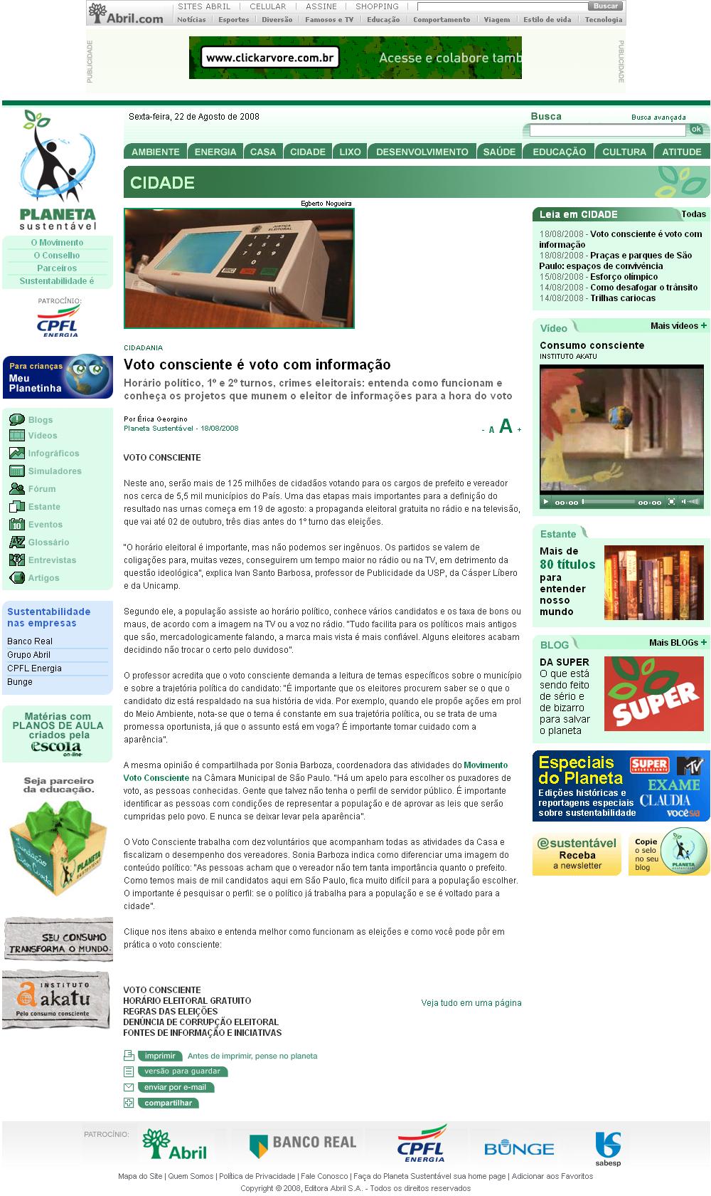 Site Planeta Sustentável (ed. Abril) - Voto Consciente é voto com informação