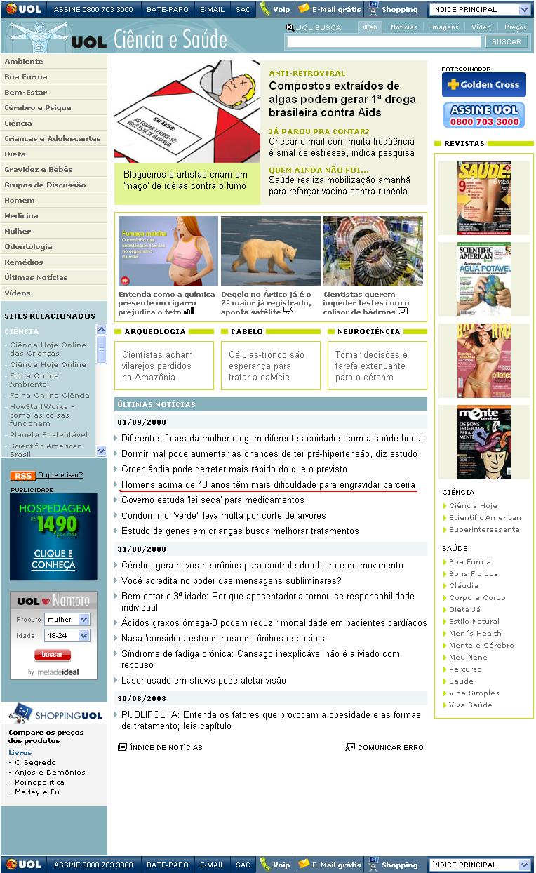 Clipping Portal UOL - Homens acima de 40 anos têm mais dificuldade para engravidar parceira 01/09/2008