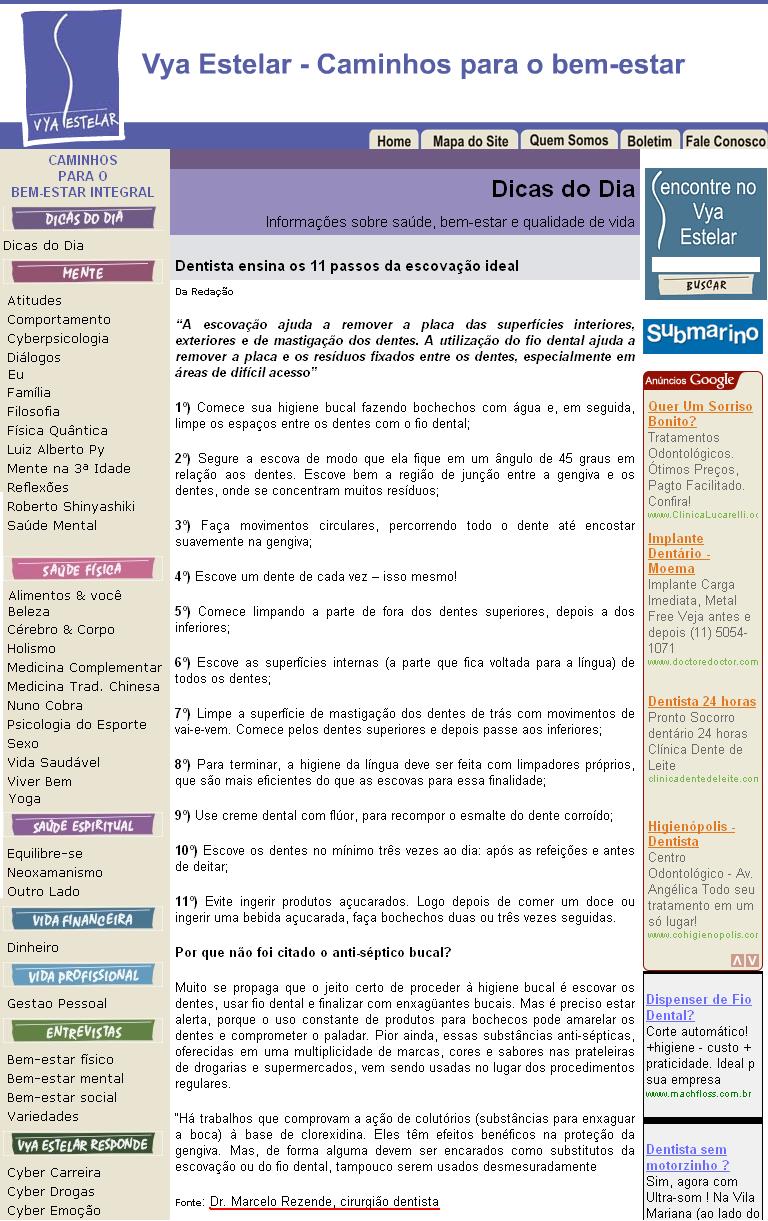 Portal UOL (Ciência & Saúde) - Dentista ensina os 11 passos da escovação ideal