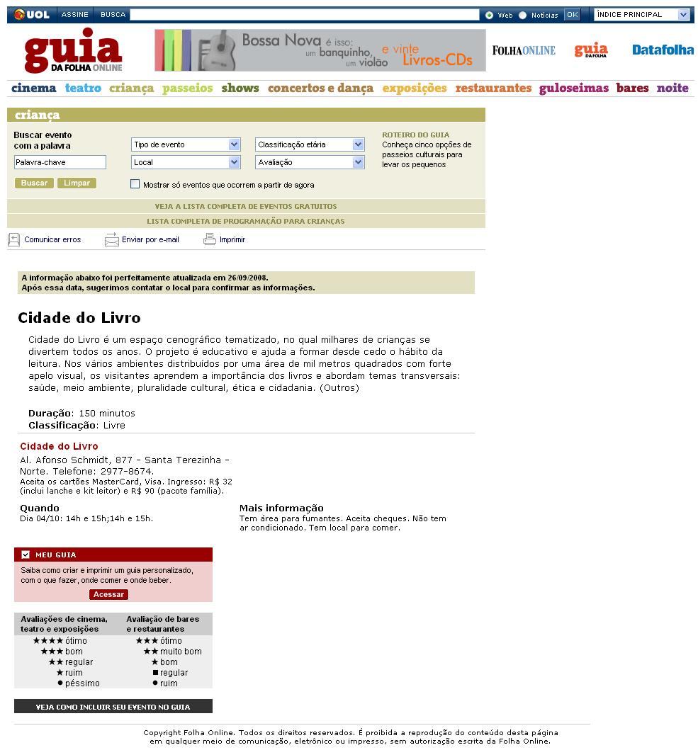 Clipping Guia da Folha on line - Cidade do Livro abre as portas e oferece quatro dias de atividades 30/09/2008