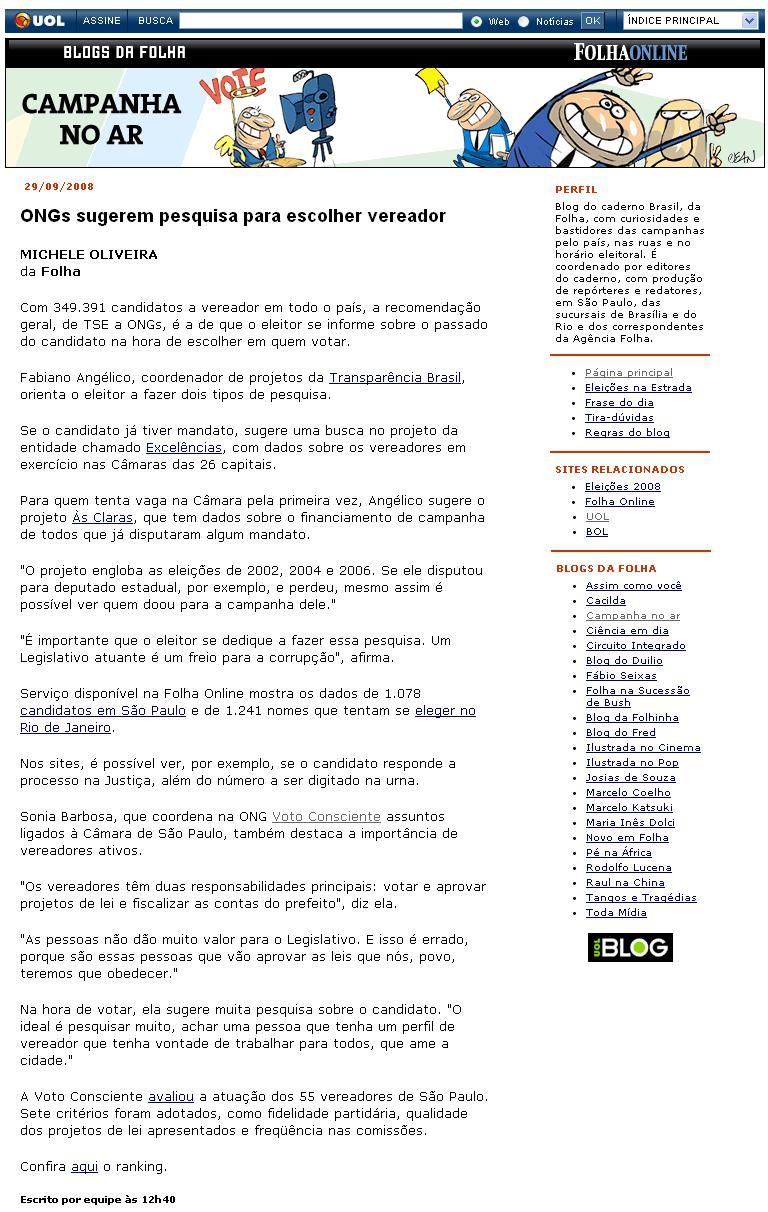 Blogs da Folha (Campanha no ar) - ONGs sugerem pesquisa para escolher vereador