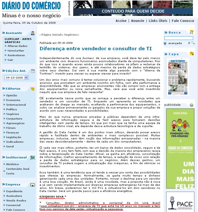 Diário do Comércio - MG (9 Out) - Diferença entre vendedor e consultor de TI