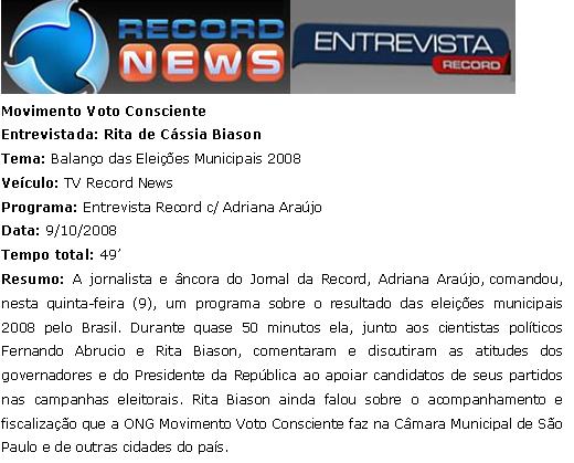 TV Record News (Entrevista Record) - Movimento Voto Consciente