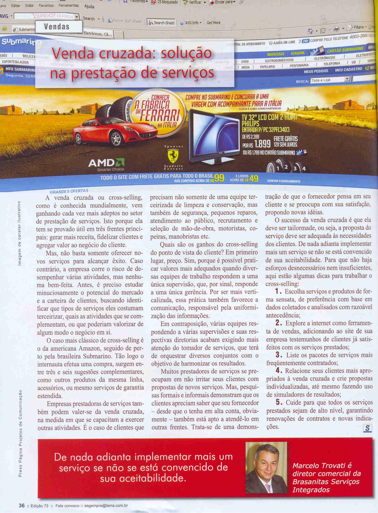Clipping Revista Segmento Empresarial (Out) - Venda cruzada: solução na prestação de serviços 14/10/2008