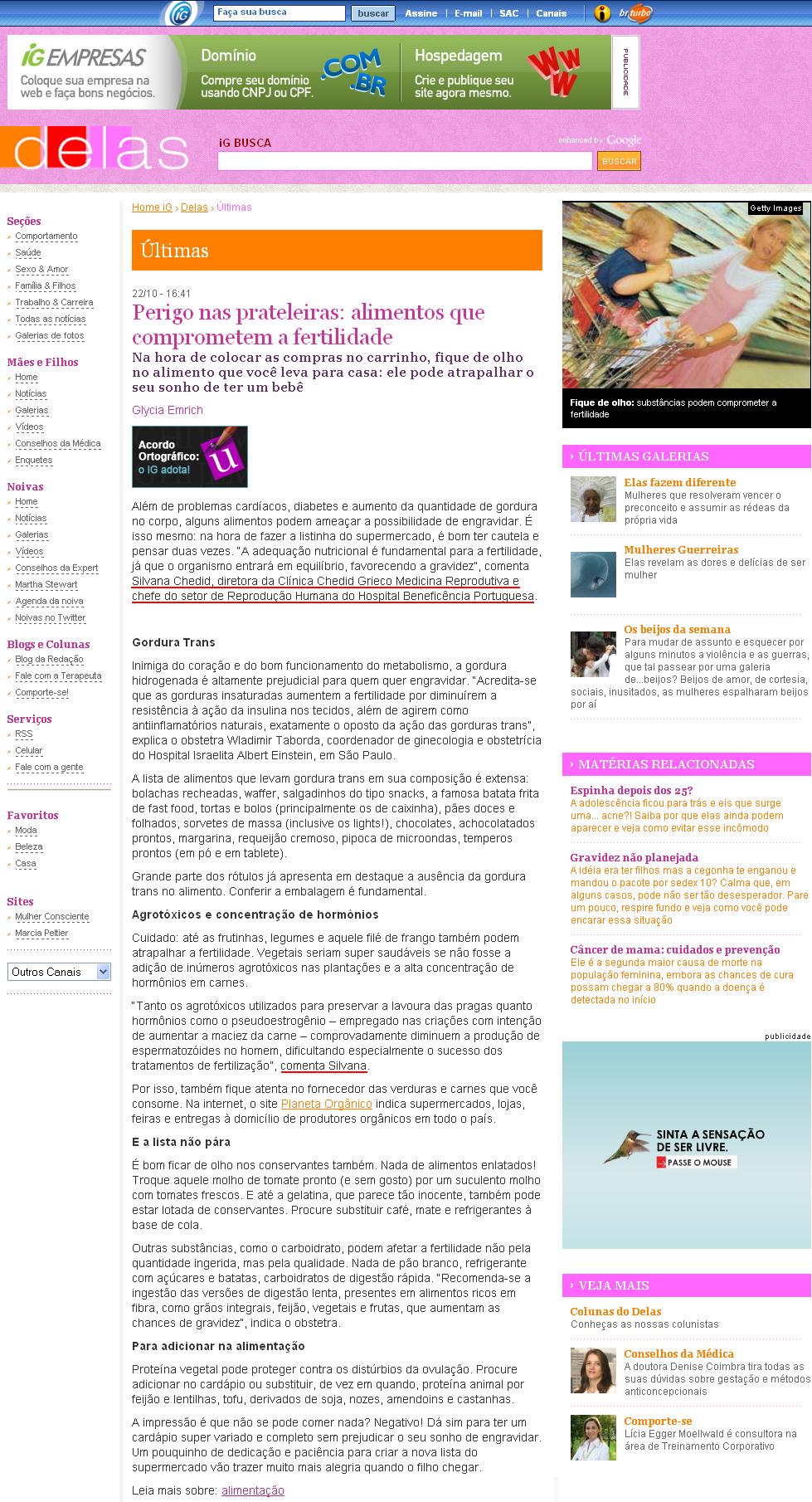 Clipping Portal IG (Delas) - Perigo nas prateleiras: alimentos que comprometem a fertilidade 24/10/2008