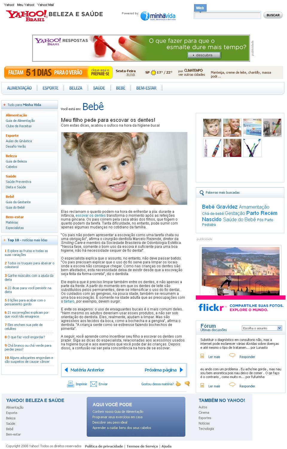 Portal Yahoo (Beleza & Saúde) - Meu filho pede para escovar os dentes!
