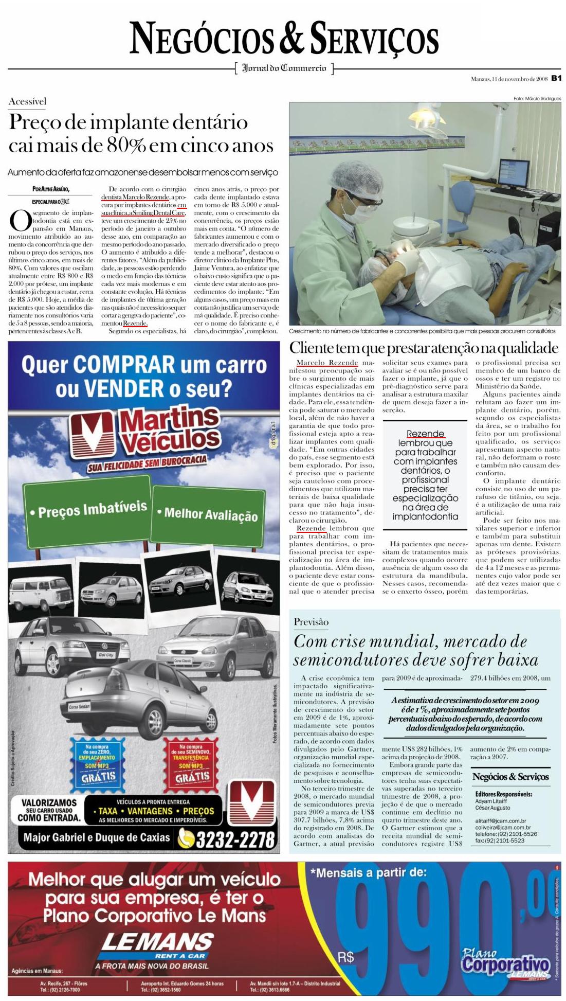 Clipping Jornal do Commercio - AM (11 Nov) - Preço de implante dentário cai mais de 80% em cinco anos 11/11/2008