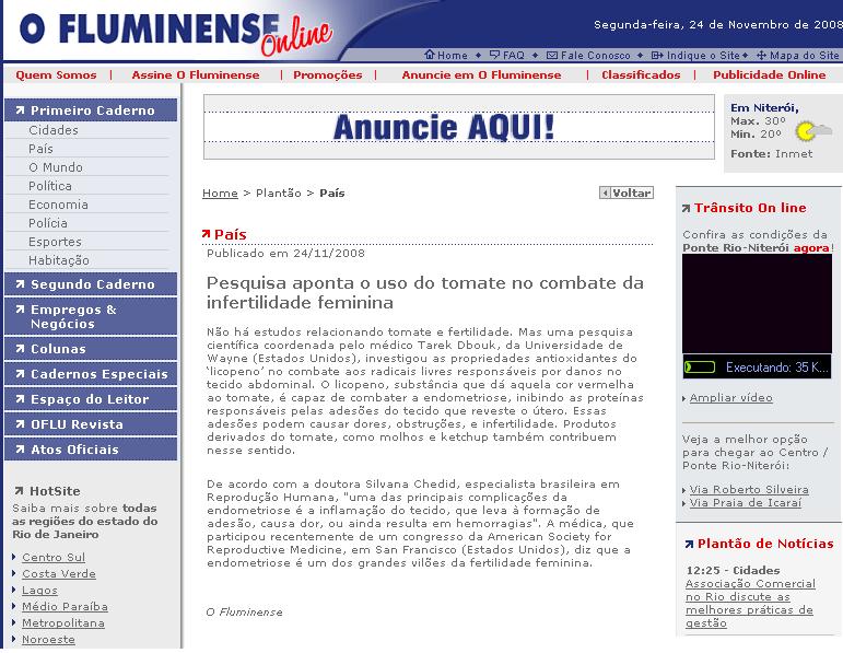 Clipping Jornal O Fluminense - RJ (24 Nov) - Pesquisa aponta o uso do tomate no combate da infertilidade feminina 25/11/2008