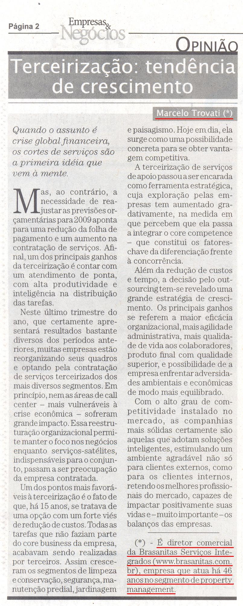 Jornal Empresas & Negócios (25 Nov) - Terceirização: tendência de crescimento