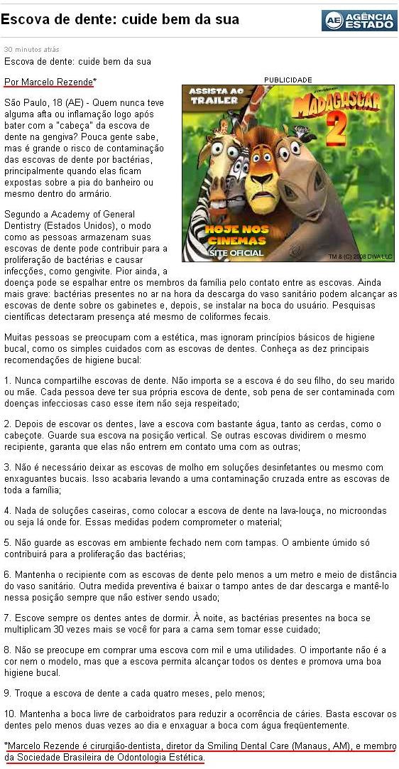 Agência Estado (AE) - Escova de dente: cuide bem da sua