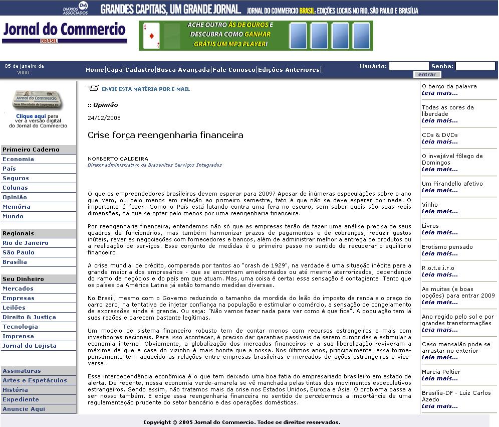 Jornal do Commercio - RJ (24 Dez) - Crise força reengenharia financeira