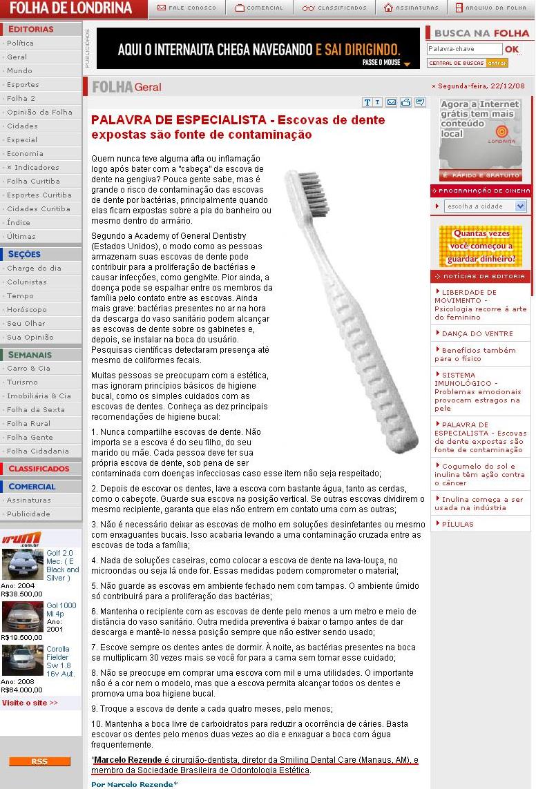 Folha de Londrina - Escovas de dente expostas são fontes de contaminação
