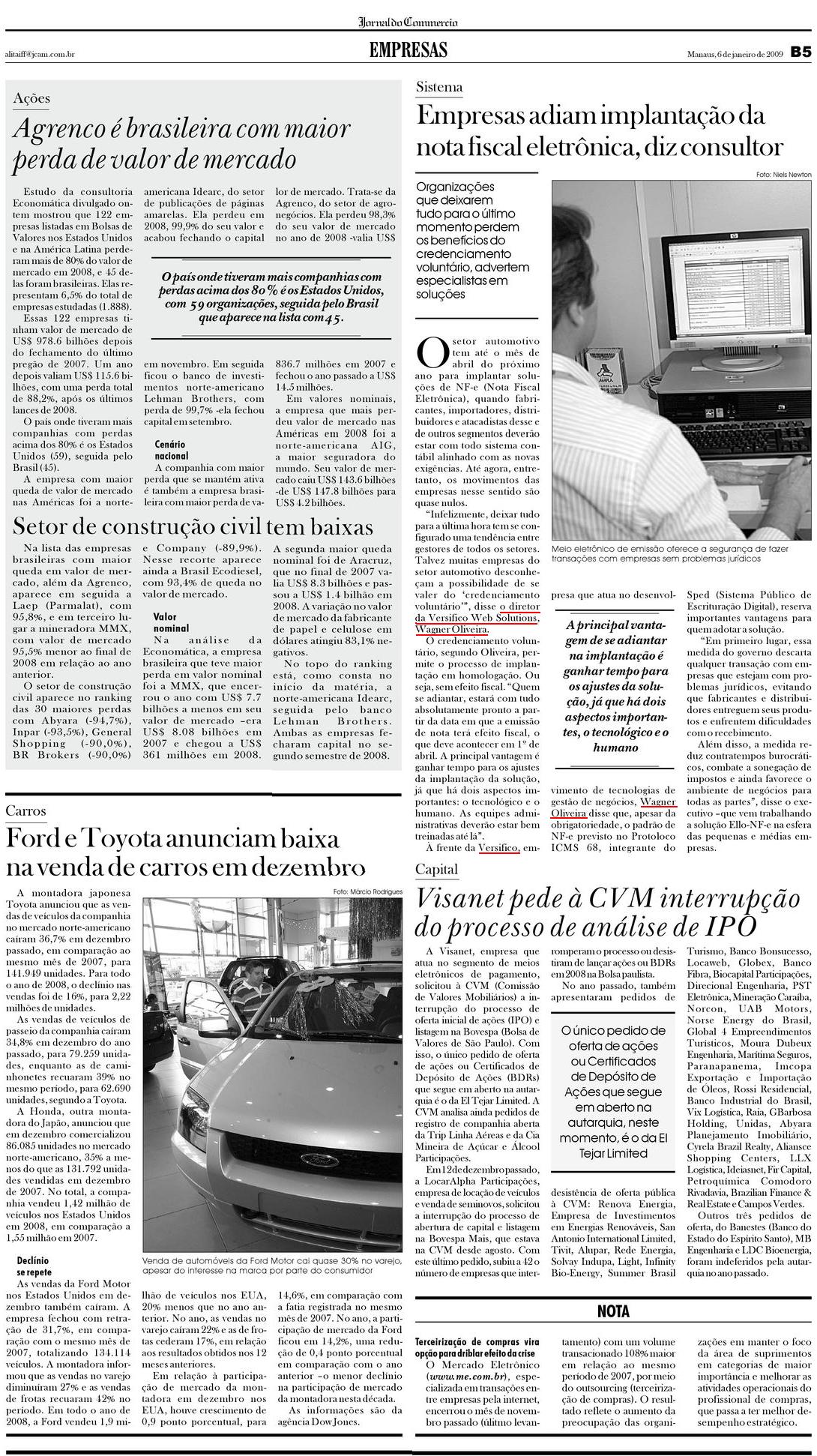Clipping Jornal do Commercio - AM (6 Jan) - Empresas adiam implantação da NF-e, diz consultor 06/01/2009