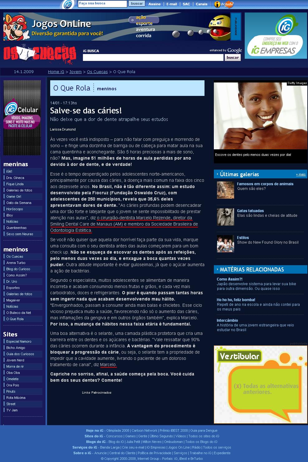 Portal IG (Chamada de capa + Matéria) - Jovens são alvo da dor de dente