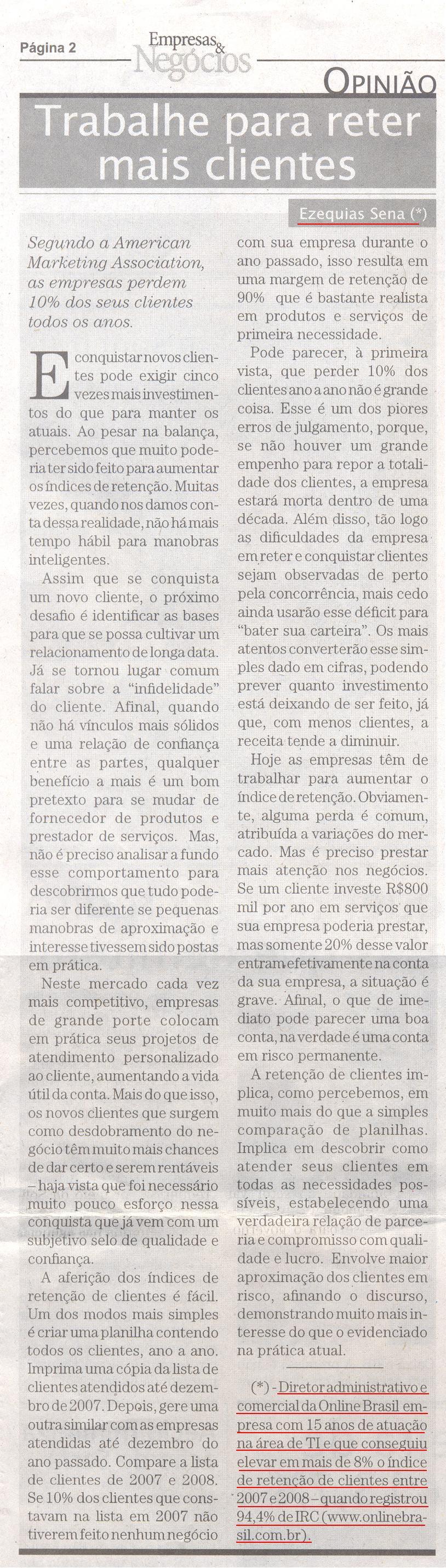 Jornal Empresas & Negócios (21 Jan) - Trabalhe para reter mais clientes