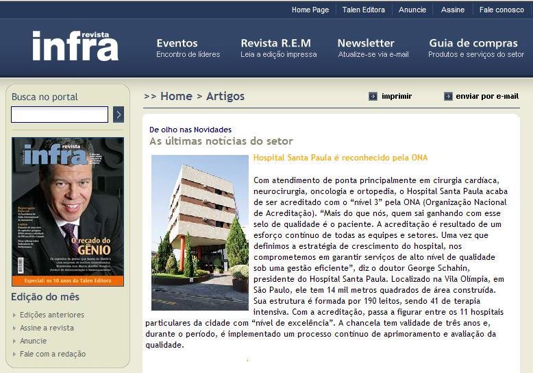 Revista Infra (Fev) - Hospital Santa Paula é reconhecido pela ONA
