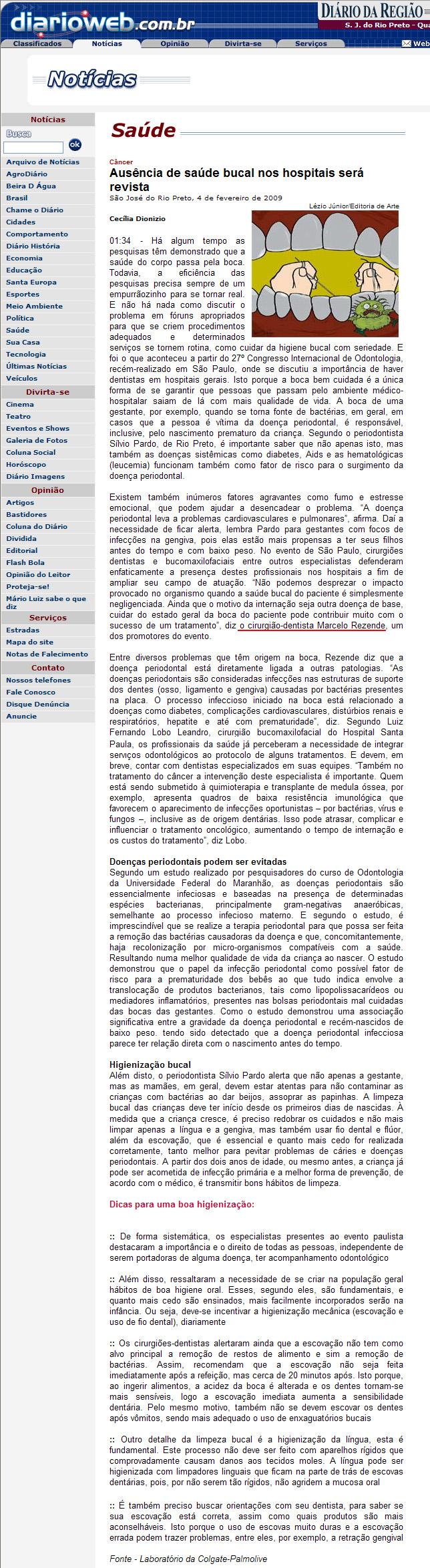 Clipping Jornal Diário da Região (4 Fev) - Ausência de saúde bucal nos hospitais será revista 13/02/2009