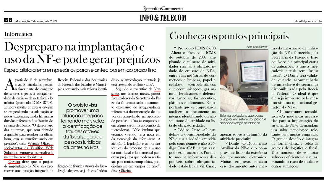 Clipping Jornal do Comércio - AM (6 Mar) - Despreparo na implantação e uso da NF-e pode gerar prejuízos 06/03/2009