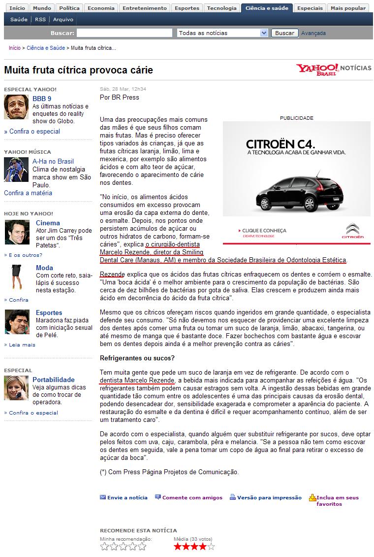 Portal Yahoo - Muita fruta cítrica provoca cárie
