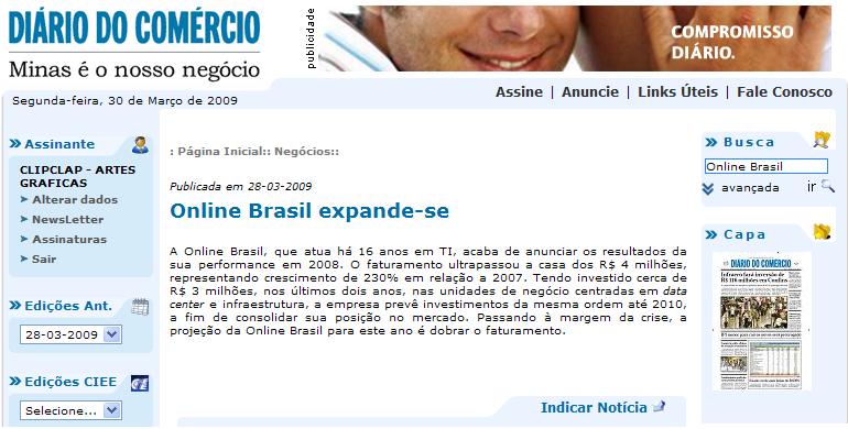 Diário do Comércio - MG (28 Mar) - Online Brasil expande-se