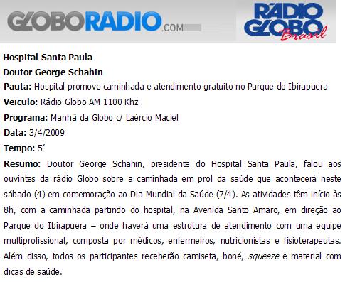 Rádio Globo AM 1100 Khz - Dr. George Schahin