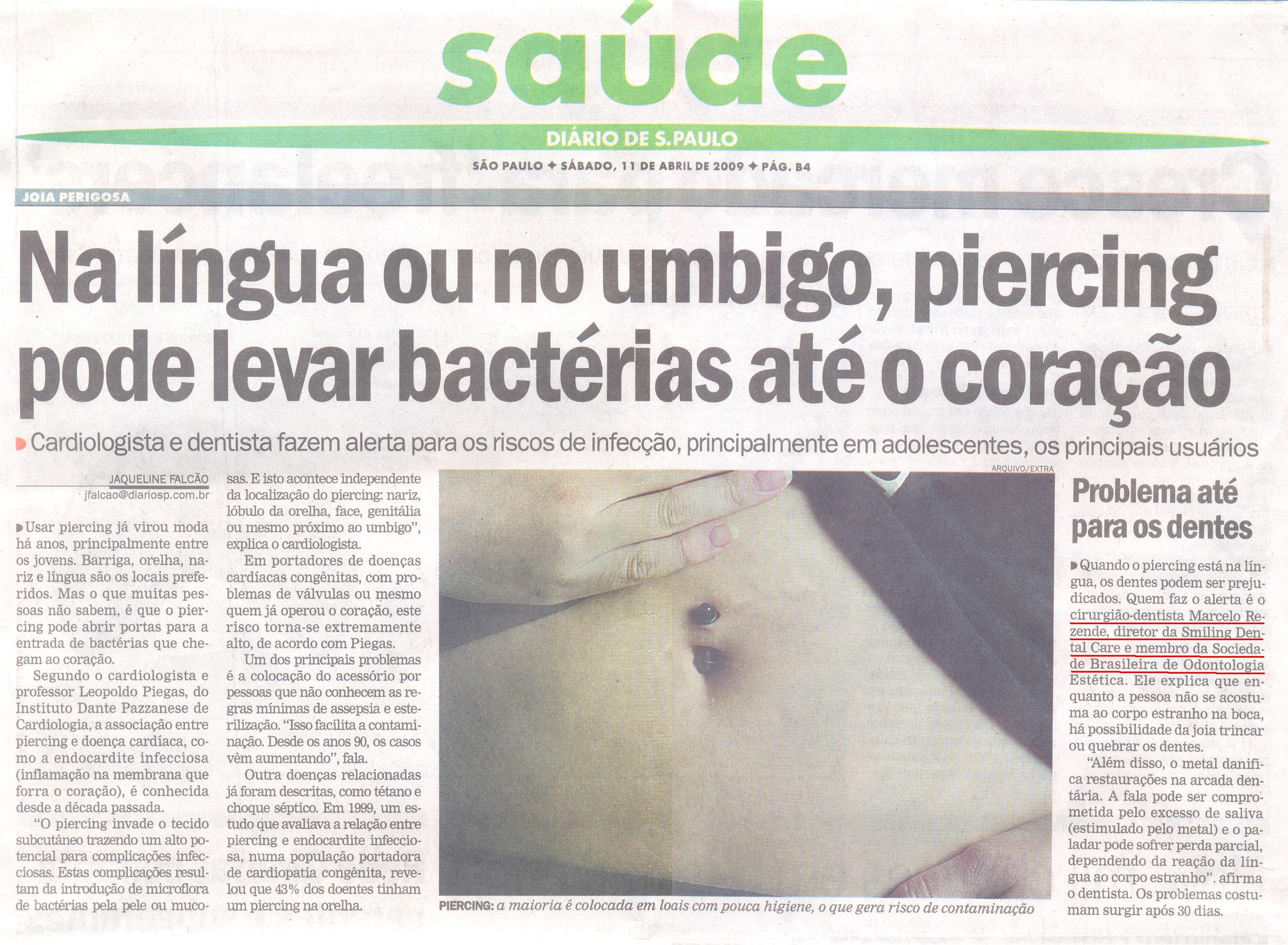 Clipping Diário de S. Paulo (11 Abr) - Na língua ou no umbigo, piercing pode levar bactérias até o coração 14/04/2009