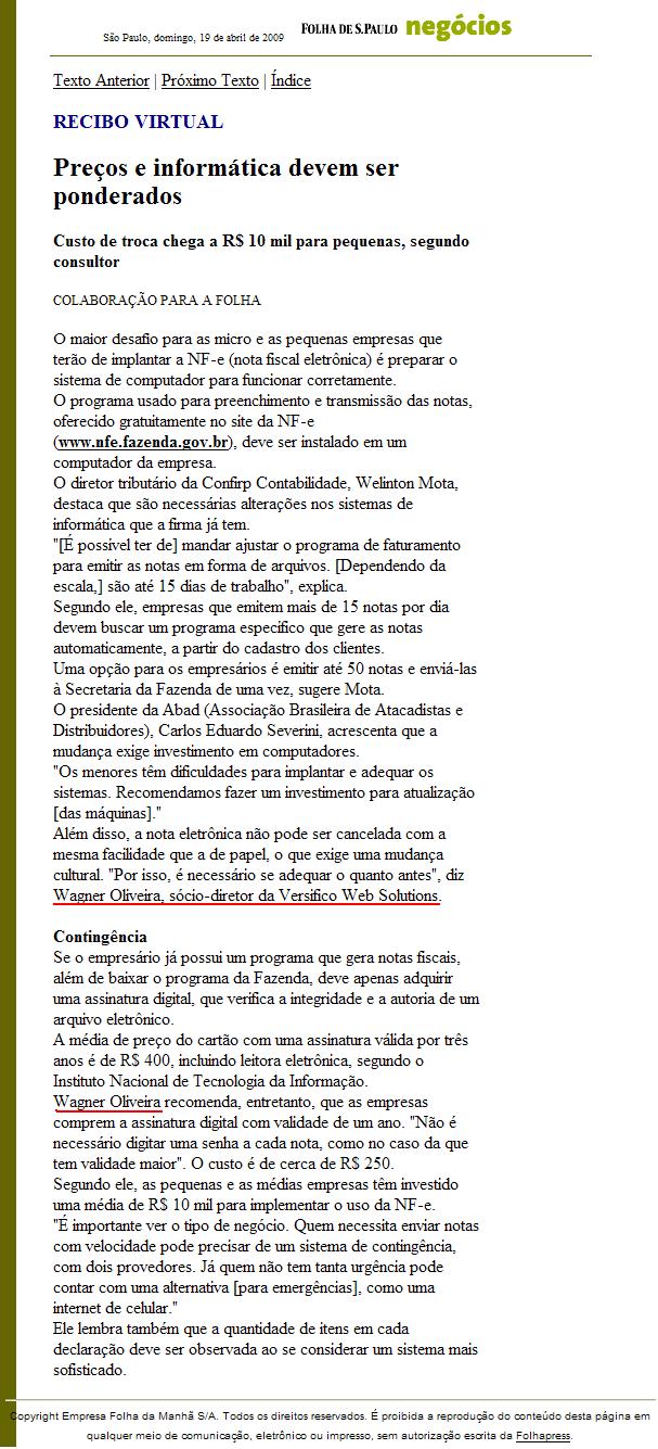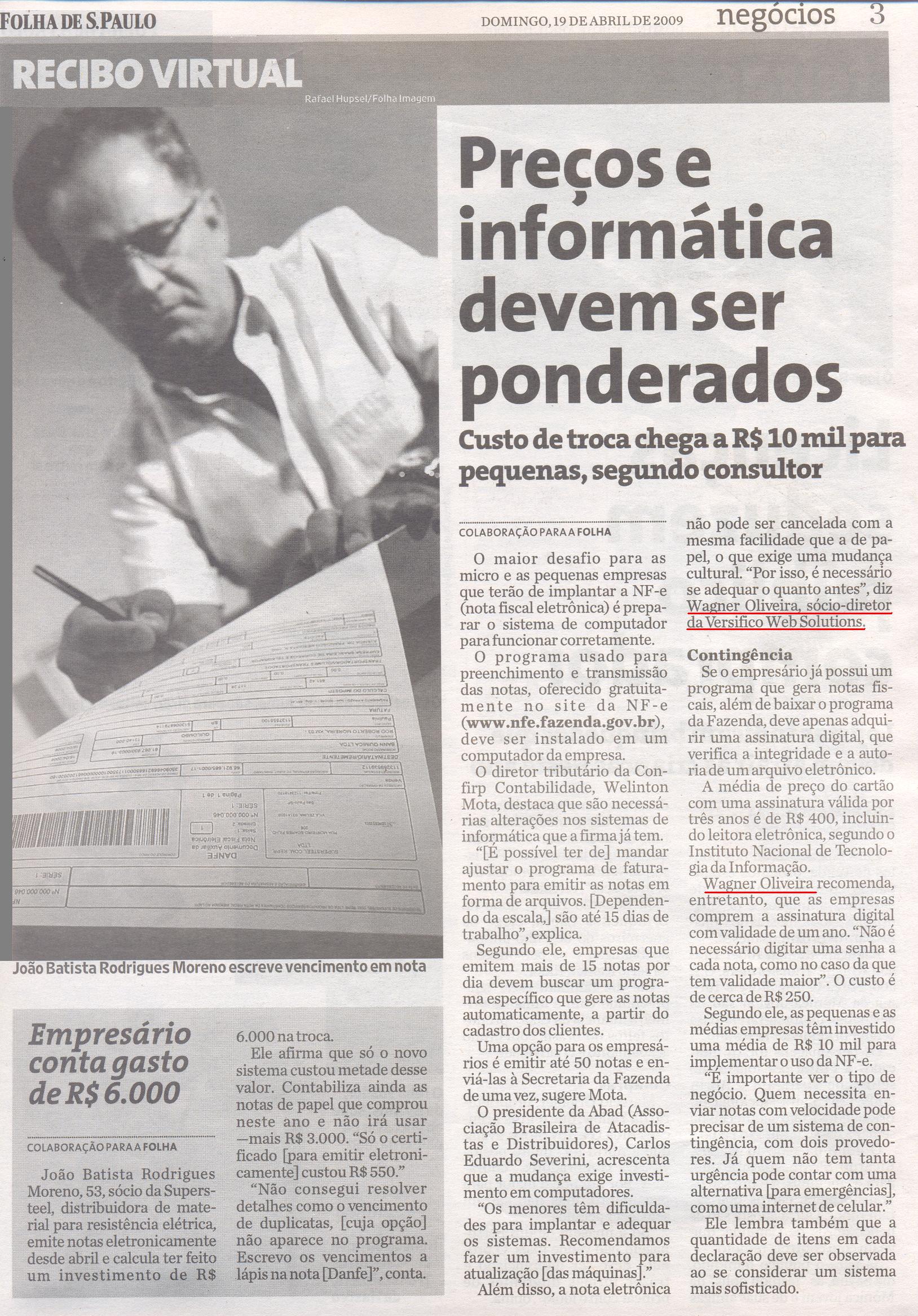Folha de S. Paulo (19 Abr) - Preços e informática devem ser ponderados