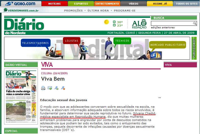 Diário do Nordeste (26 Abr) - Educação sexual dos jovens