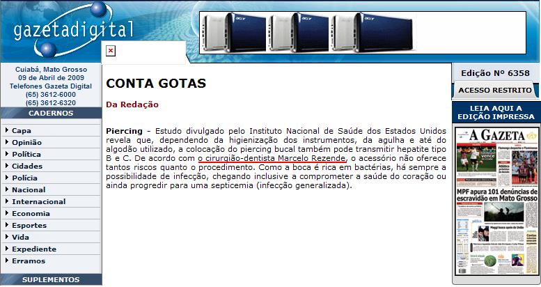 Jornal A Gazeta (Cuiabá/MT) - Piercing