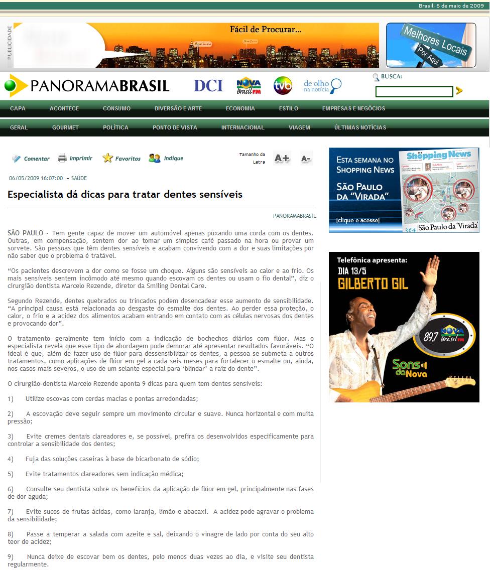 Clipping Agência de Notícias Panorama Brasil (DCI) - Especialista dá dicas para tratar dentes sensíveis 07/05/2009