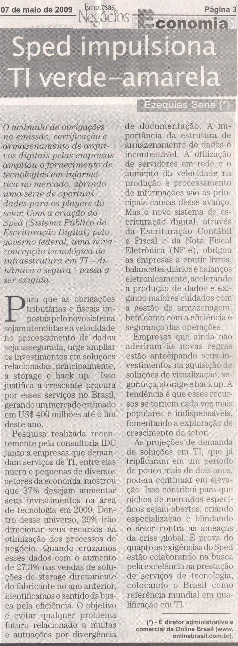 Jornal Empresas & Negócios (7 Mai) - Sped impulsiona TI verde-amarela