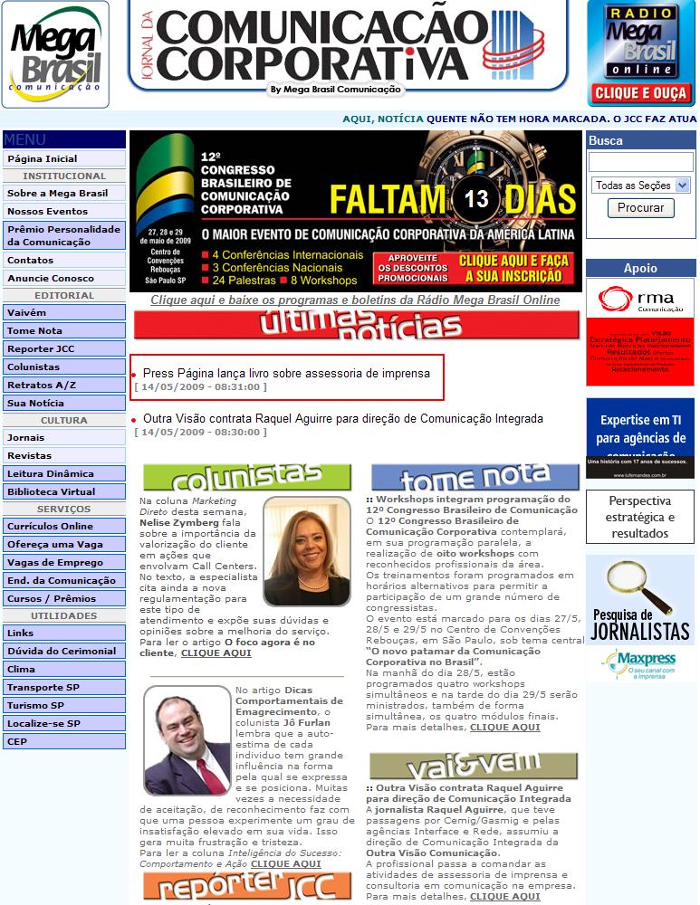 Clipping Jornal da Comunicação Corporativa - Press Página lança livro sobre assessoria de imprensa 14/05/2009