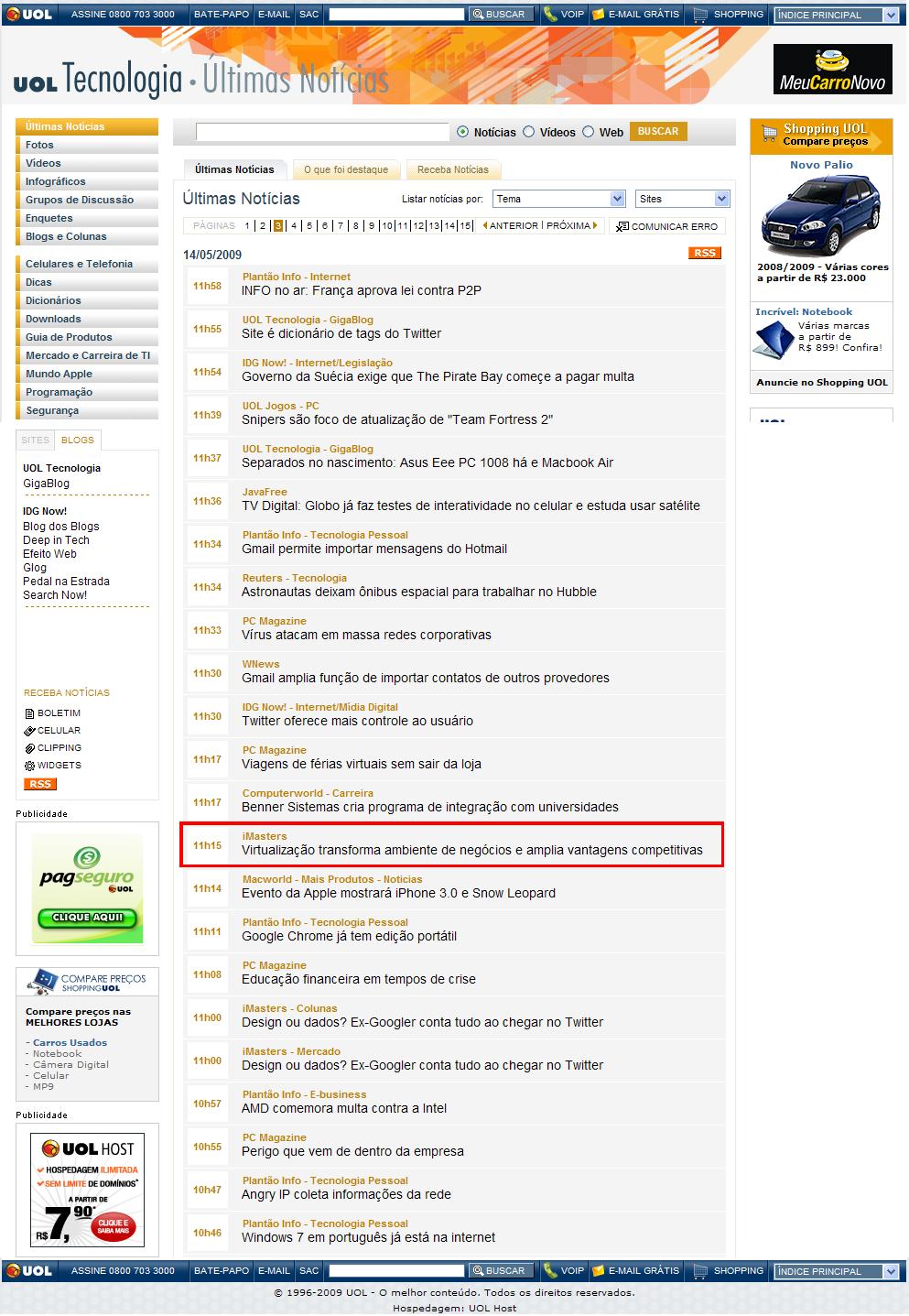 Clipping Portal UOL (Tecnologia) - Virtualização transforma ambiente de negócios e amplia vantagens competitivas 15/05/2009