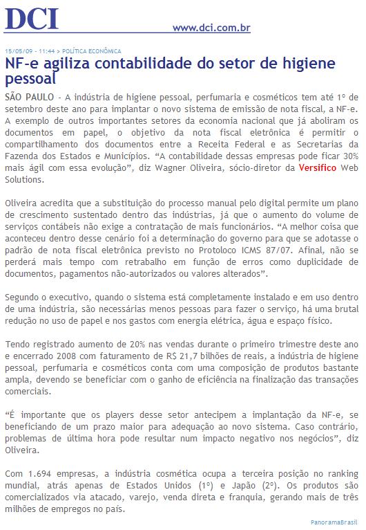 Jornal DCI digital - NF-e agiliza contabilidade do setor de higiene pessoal