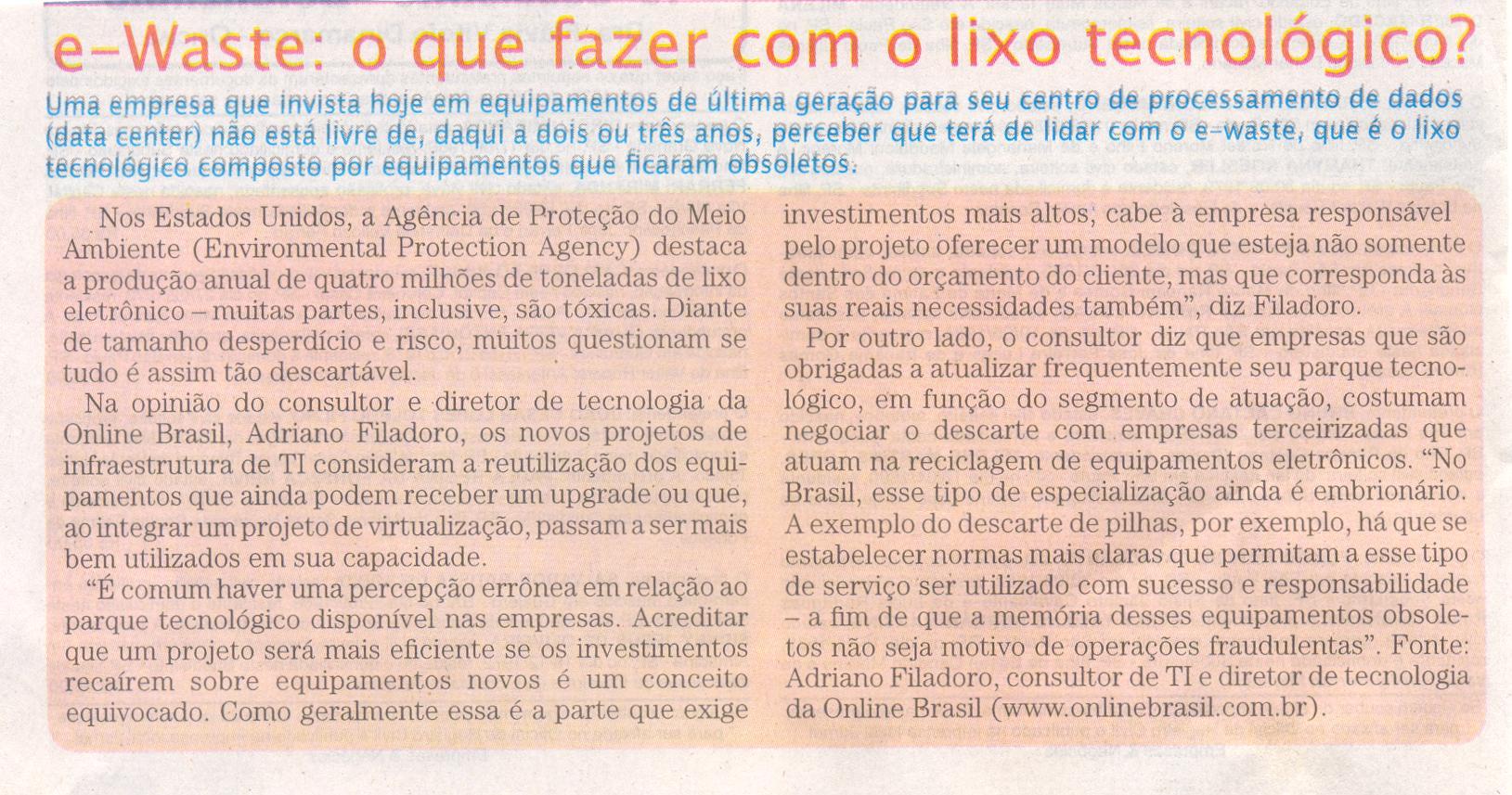Clipping Jornal Empresas & Negócios (21 Maio) - e-Waste: o que fazer com o lixo tecnológico? 22/05/2009