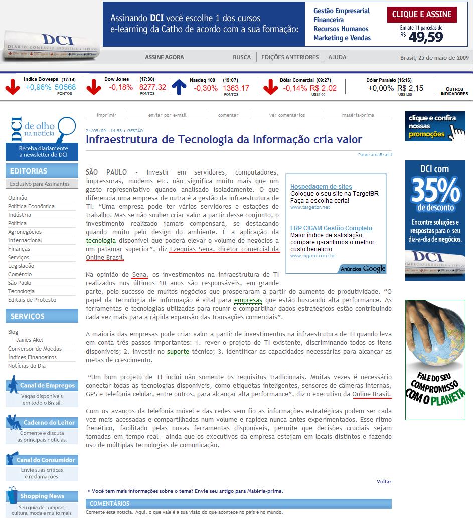 Jornal DCI Digital - Infraestrutura de tecnologia da informação cria valor
