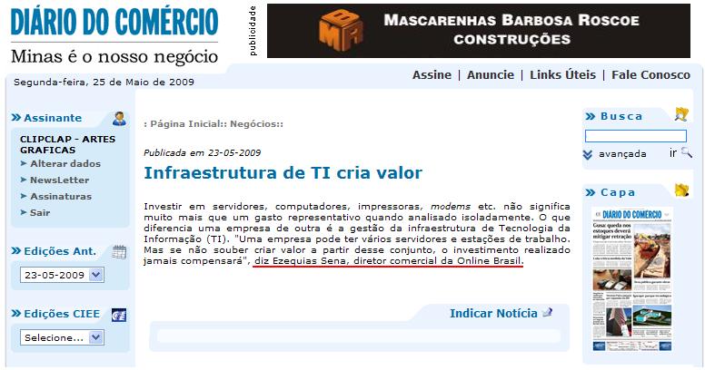 Diário do Comércio/MG (23 Maio) - Infraestrutura de TI cria valor