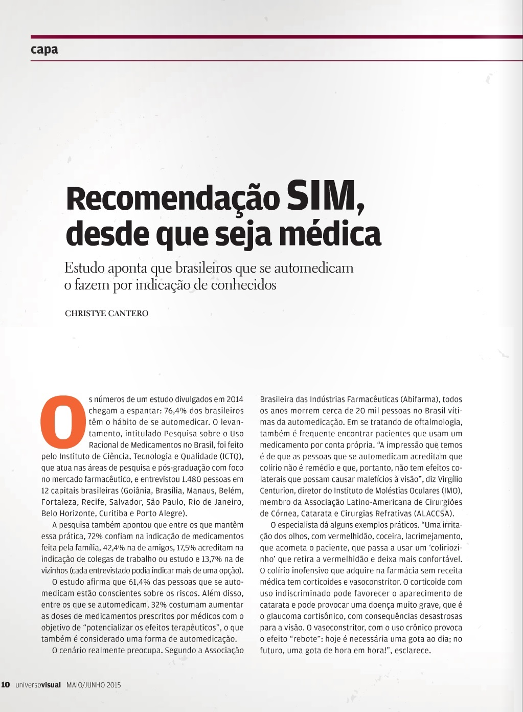 REVISTA UNIVERSO VISUAL (IMPRESSO) - Recomendação sim, desde que seja médica