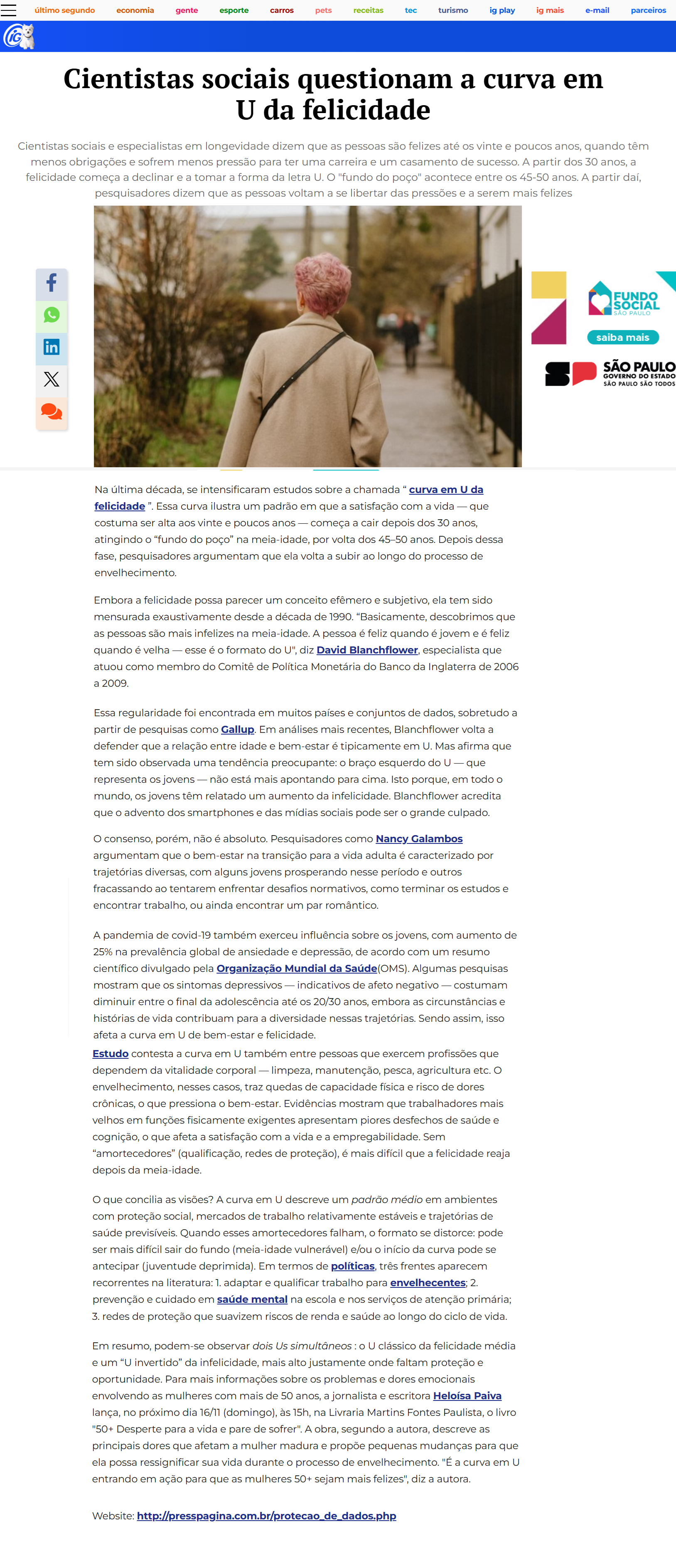 PORTAL IG (AGORA) - Cientistas contestam curva em U da felicidade