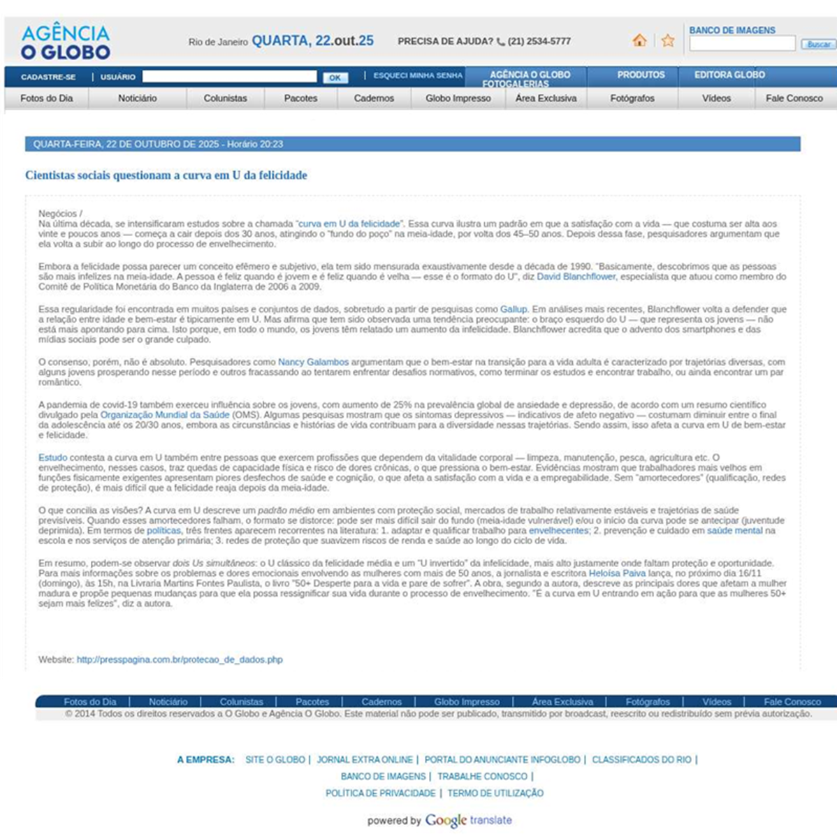 AGÊNCIA O GLOBO - Cientistas contestam curva em U da felicidade