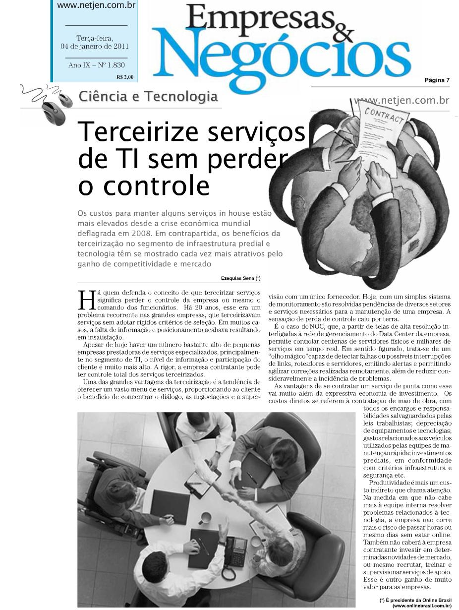Clipping JORNAL EMPRESAS & NEGÓCIOS (IMPRESSO E DIGITAL) - Terceirize serviços de TI sem perder o controle 04/01/2011