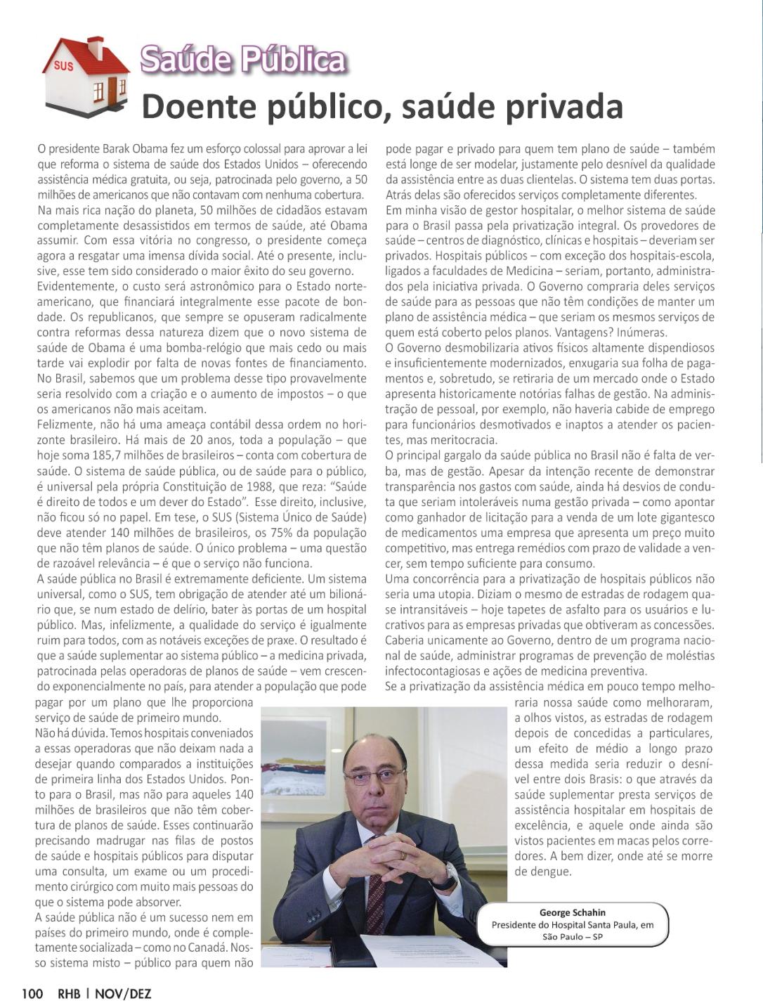 REVISTA HOSPITAIS BRASIL (IMPRESSO E DIGITAL) - Doente público, saúde privada