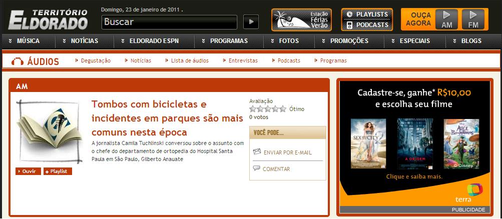 Clipping RÁDIO ELDORADO AM - Tombos com bicicletas e incidentes em parques são mais comuns nesta época 19/01/2011