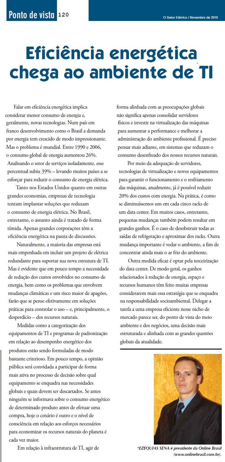 Clipping REVISTA O SETOR ELÉTRICO (IMPRESSA E DIGITAL) - Eficiência energética chega ao ambiente de TI 27/01/2011
