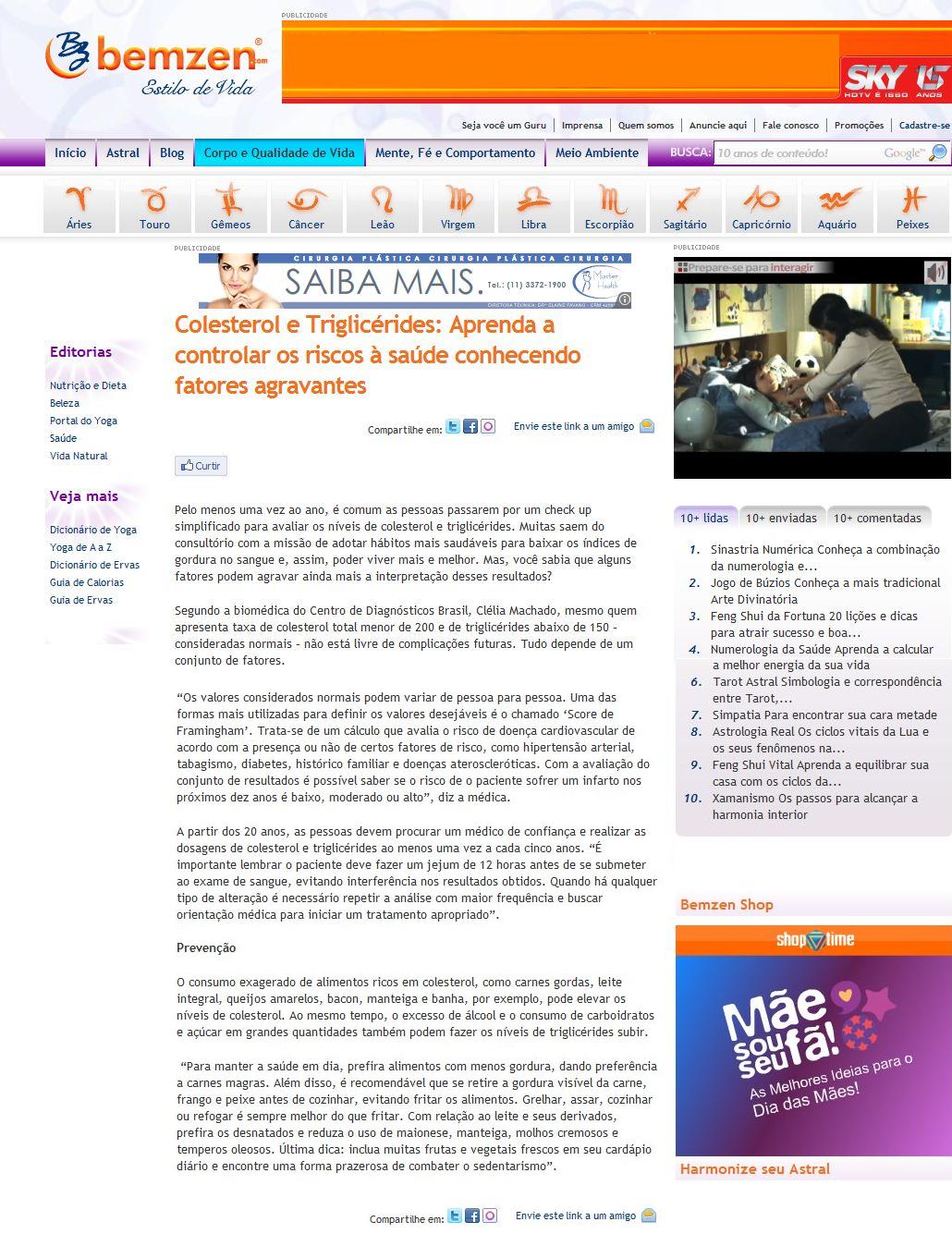 BEM ZEN (PORTAL UOL) - É importante controlar o colesterol desde cedo