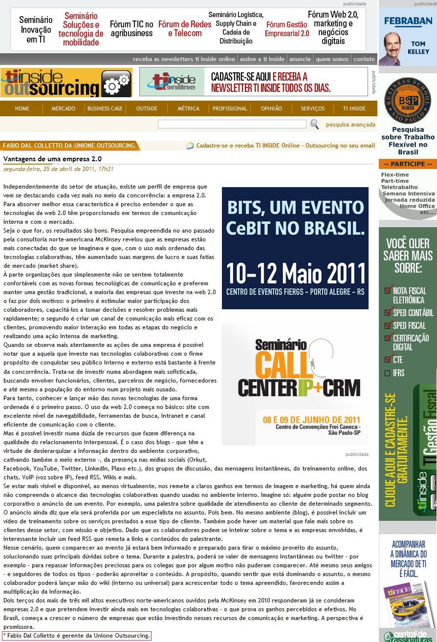 TI INSIDE (OUTSOURCING) - Vantagens de uma empresa 2.0