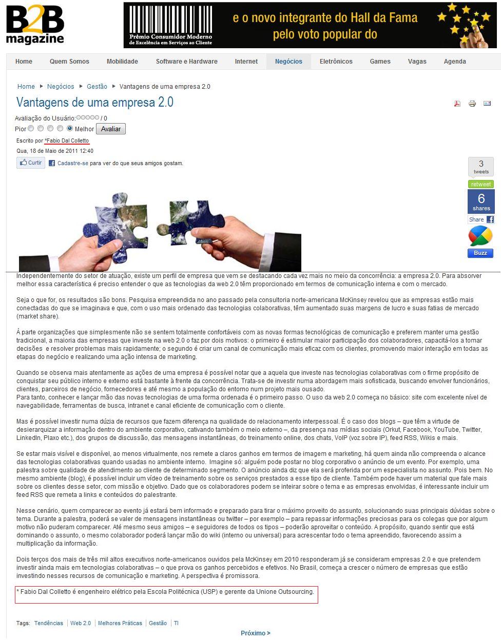 B2B MAGAZINE - Vantgens de uma empresa 2.0
